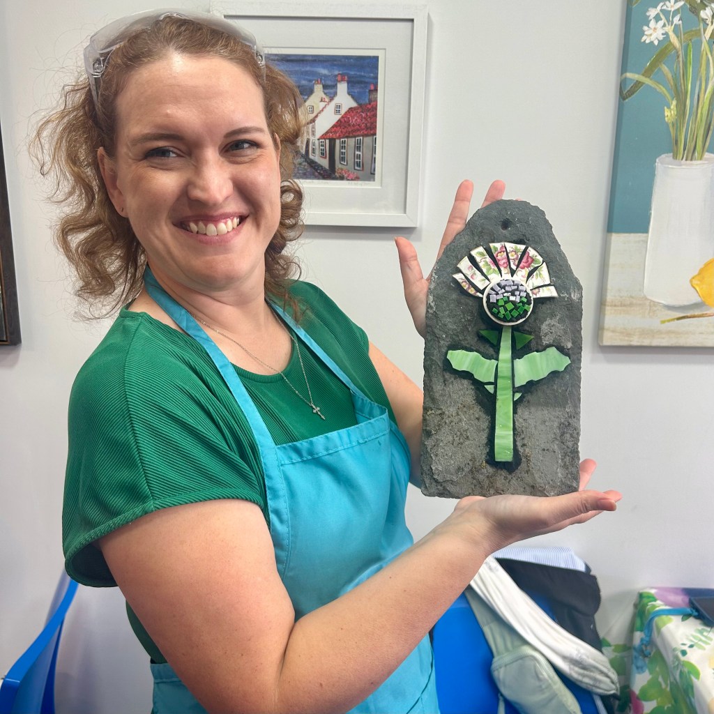 Would highly recommend this course. I’ve even gone and bought my own kit to continue on at home, I found tiling my slate so relaxing.”