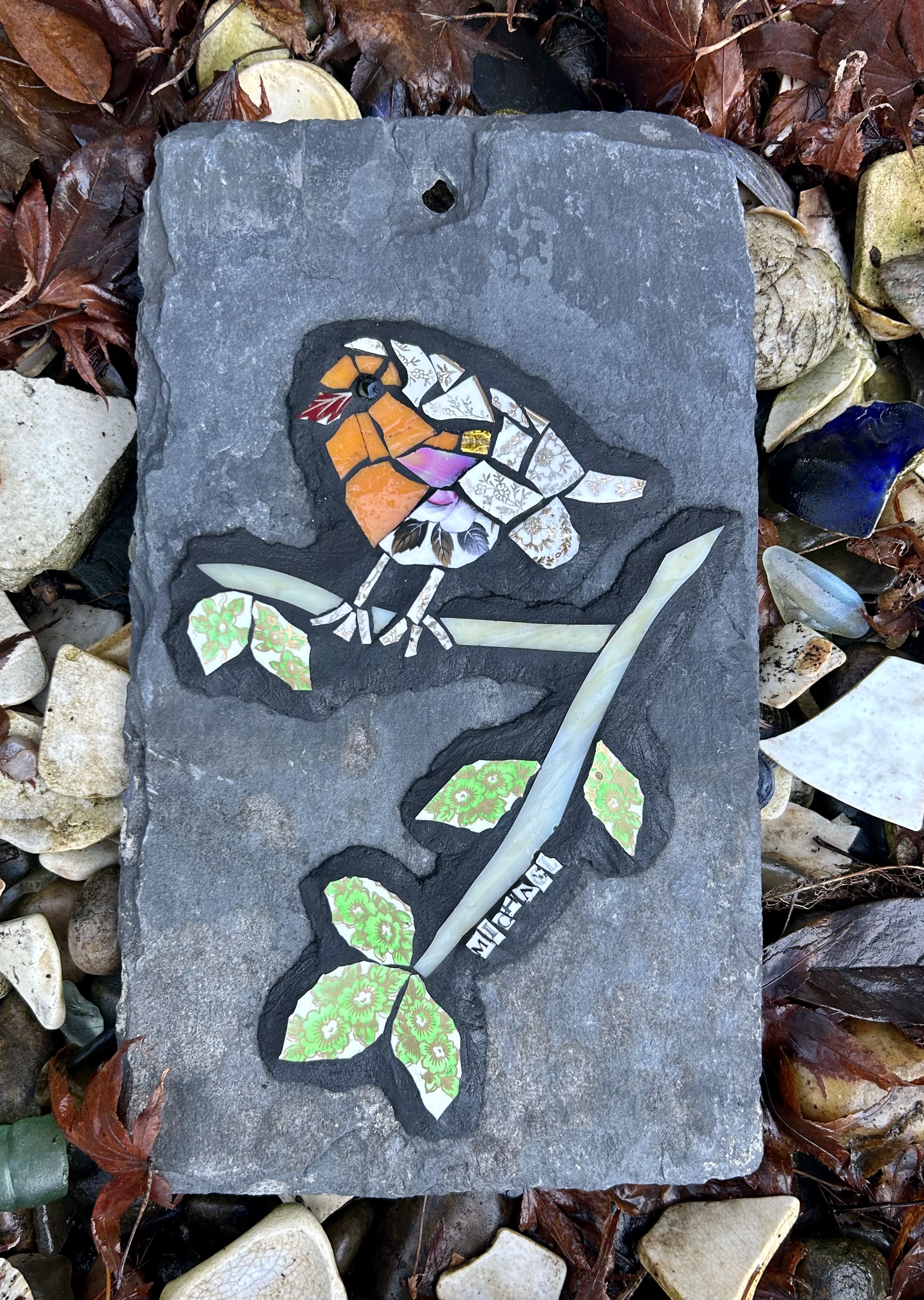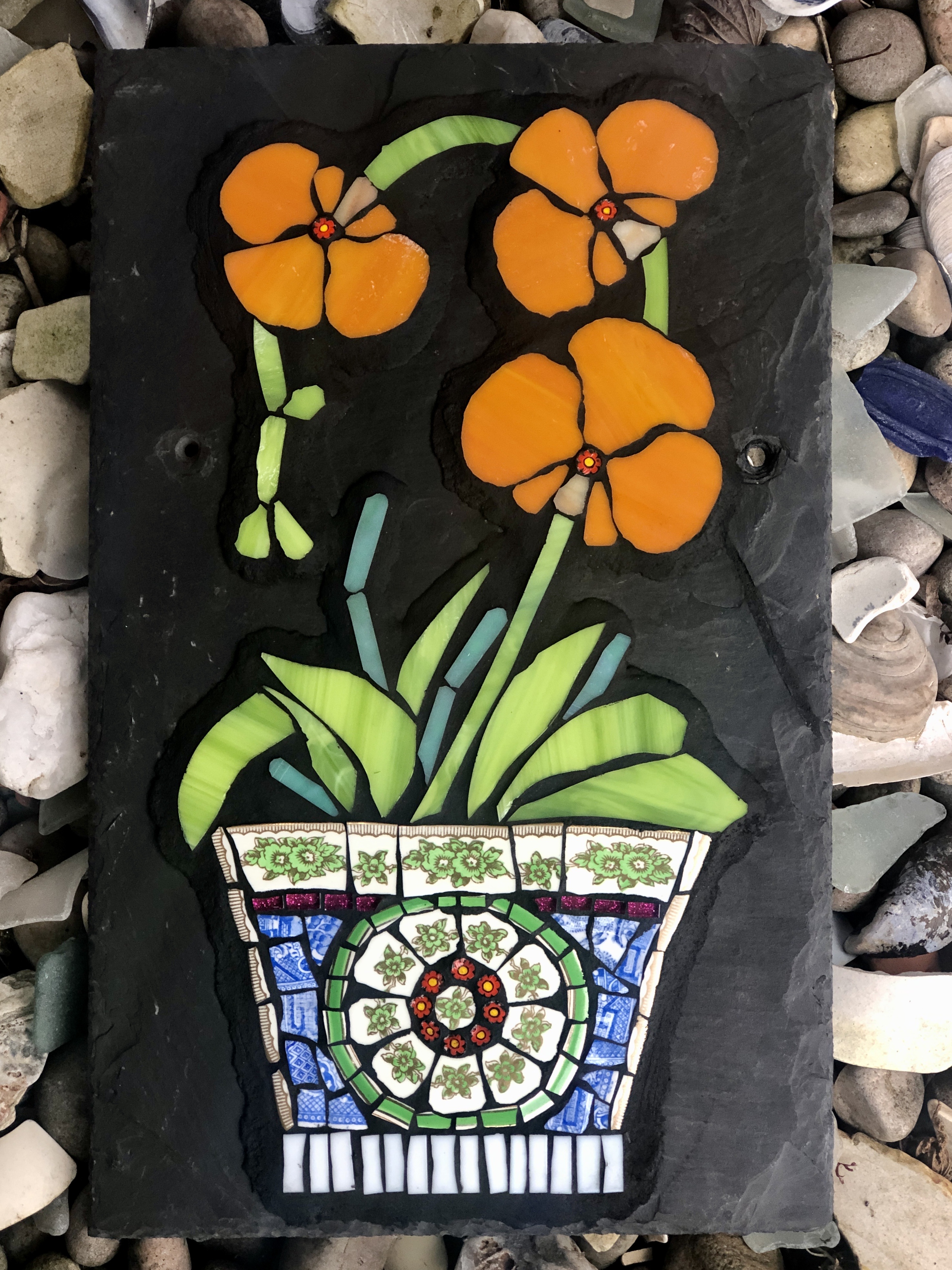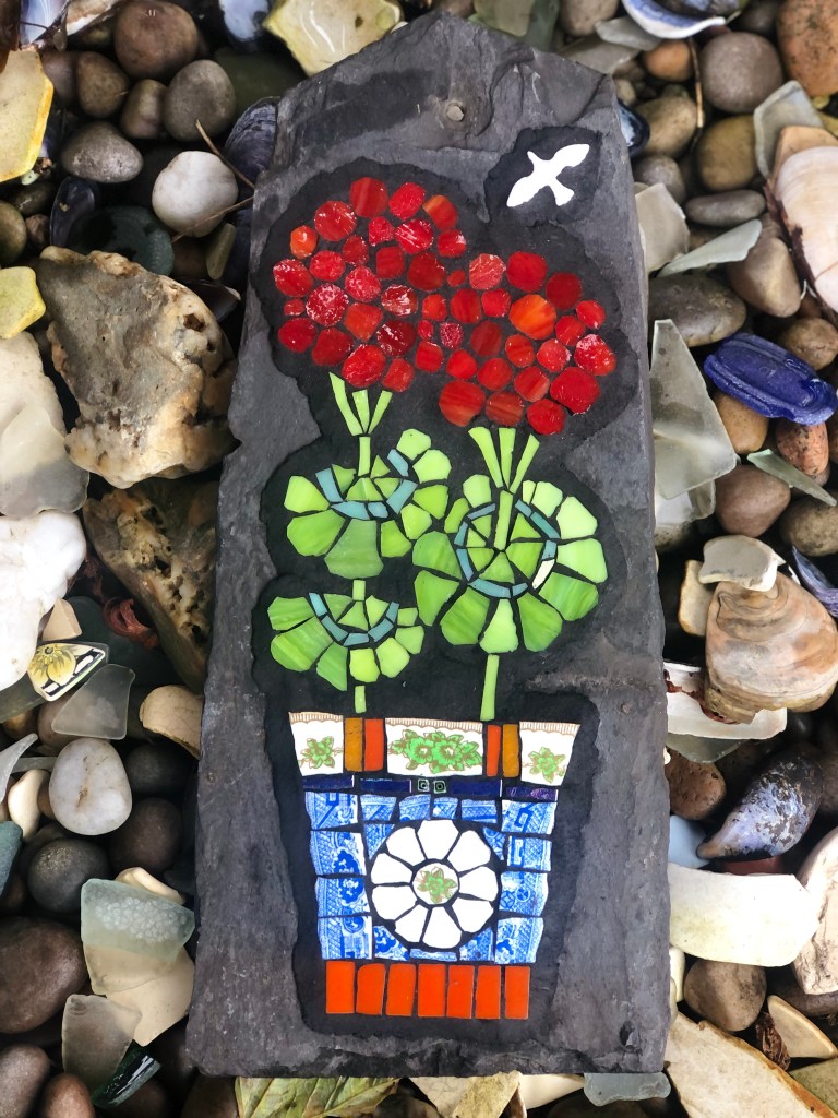 Rhona enjoys bringing her customers’ visions to life when she undertakes commissions, which are often to celebrate special occasions or evoke memories. She especially loves creating memorial or commemorative mosaics for special anniversaries or birthdays. She also creates mosaic work for other private, community and public art projects. You can see a selection of her mosaics below. Please get in touch if you’d like to commission a mosaic.