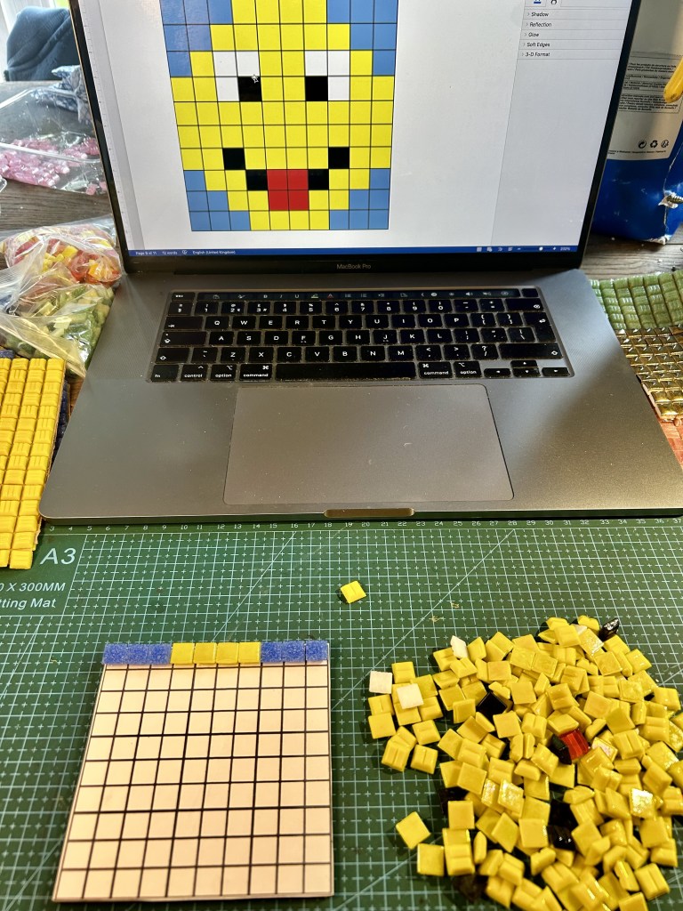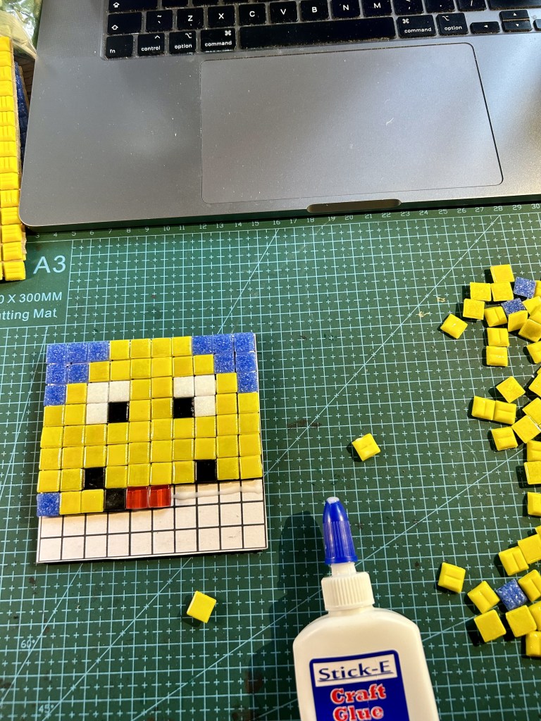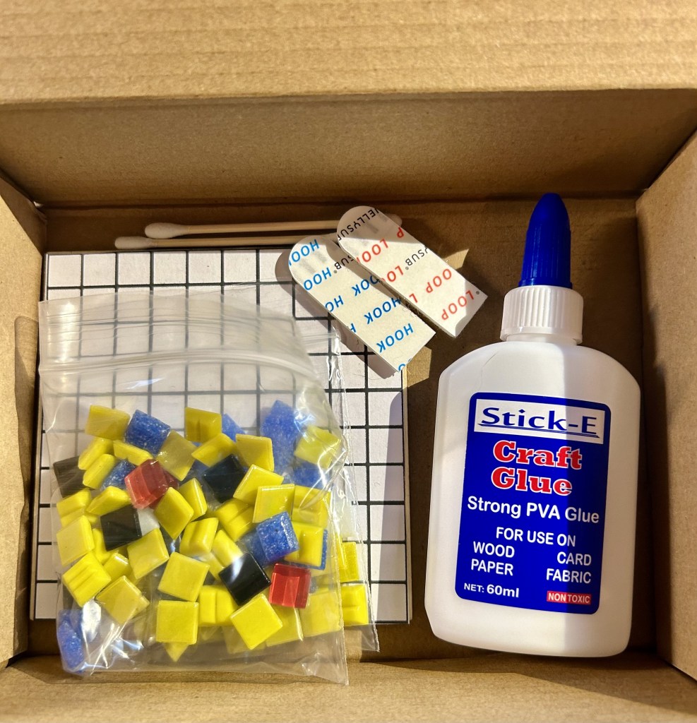 Remove the mosaic tiles from the bag, and open the glue. After you’ve read through these instructions, find the image of your mosaic below and put that on your screen while you work as a reference guide to placing your tiles.